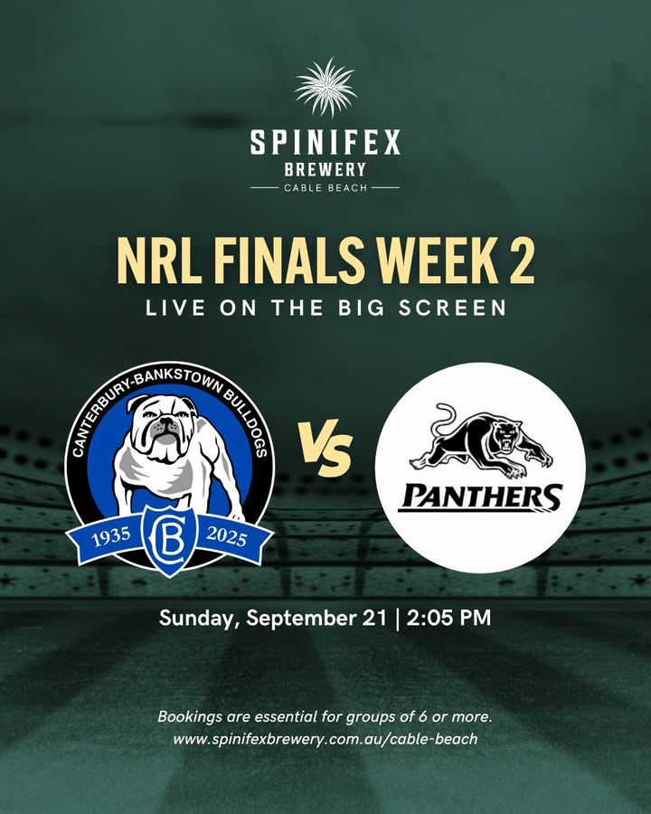 Bulldogs vs Panthers Showdown at Spinifex Cable Beach Get ready for an epic NRL finals viewing experience at Spinifex Cable Beach as the Bulldogs take on the Panthers this Sunday. The big screen will be alive with the thrilling action, making sure you don’t miss a single moment of the game. Exciting $12 Pints and Family Combos Enjoy the game …