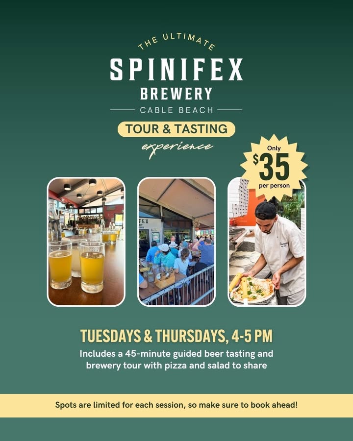 Welcome to Spinifex Cable Beach, where the best of the Spini awaits you! 🍻 Get ready to go behind the scenes and immerse yourself in an unforgettable Ultimate Tour & Tasting Experience. Experience the Best of Spini Launching on October 14 and running every Tuesday and Thursday, this exclusive experience is a steal at just $35 per person. Your ticket …